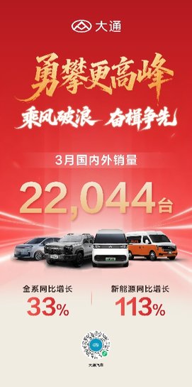 以3月销量新高、一季度稳健增长为新起点,上汽大通将继续锚定“全球轻型商用车领导者”战略愿景,持续深化新能源转型与全球化布局,以更优质的产品与服务深耕全球市场,引领轻型商用车行业迈向绿色、智能、全球化的高质量发展新阶段。