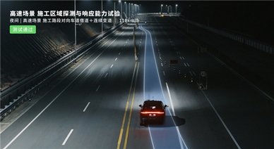 夜间高速施工是事故高发场景,低光照环境下,交通锥、防撞桶、隔离墩等障碍物反光性差,对车辆感知系统挑战极大。测试中,华境S在夜间环境下,能精准识别各类低反光障碍物,并以110km/h的车速平稳避让、自主变道通行。