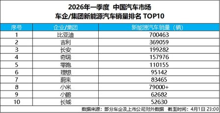 4 月 1 日,比亚迪发布 2026 年 3 月产销数据,单月总销量达300222 辆,强势突破 30 万辆大关,斩获中国车企销量冠军,并连续 58 个月蝉联中国新能源汽车销量冠军,持续稳固行业龙头地位。截至目前,比亚迪新能源汽车累计销量已超1580 万辆,一季度累计销售 700463 辆,以硬核数据印证技术与规模双重实力,助力一季度完美收官。