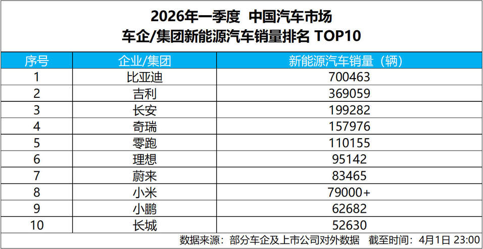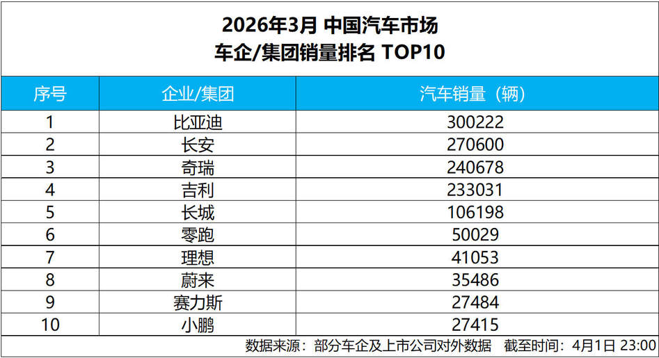 4 月 1 日,比亚迪发布 2026 年 3 月产销数据,单月总销量达300222 辆,强势突破 30 万辆大关,斩获中国车企销量冠军,并连续 58 个月蝉联中国新能源汽车销量冠军,持续稳固行业龙头地位。截至目前,比亚迪新能源汽车累计销量已超1580 万辆,一季度累计销售 700463 辆,以硬核数据印证技术与规模双重实力,助力一季度完美收官。