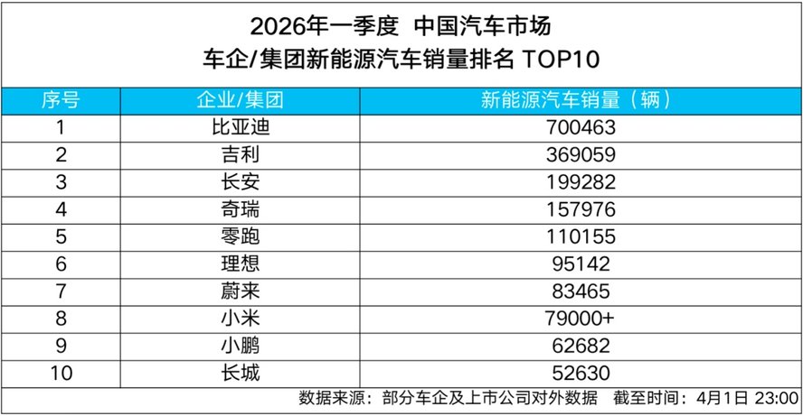 4 月 1 日,比亚迪发布 2026 年 3 月产销数据,单月总销量达300222 辆,强势突破 30 万辆大关,斩获中国车企销量冠军,并连续 58 个月蝉联中国新能源汽车销量冠军,持续稳固行业龙头地位。截至目前,比亚迪新能源汽车累计销量已超1580 万辆,一季度累计销售 700463 辆,以硬核数据印证技术与规模双重实力,树立新能源汽车新标杆。