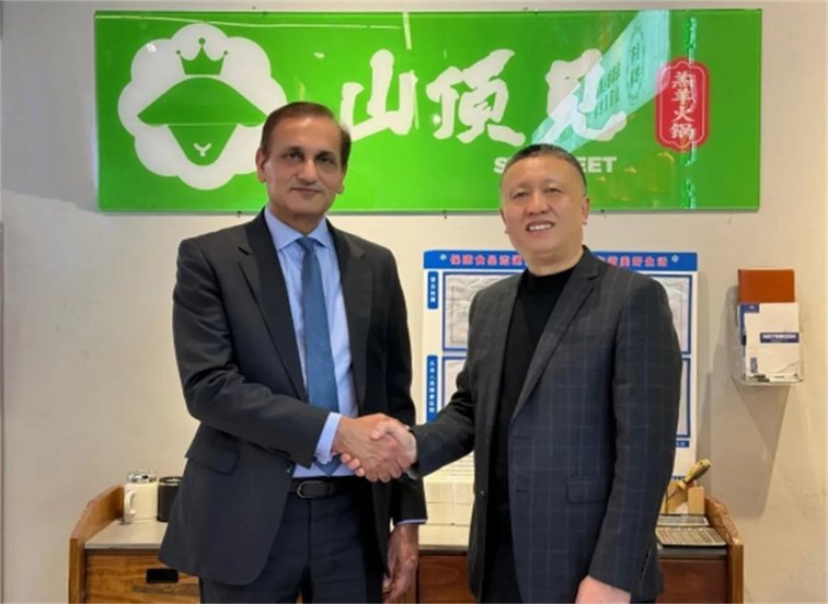 交流期间,考察方详细了解了“山顶见”火锅以乌珠穆沁羊肉为核心的全产业链布局,从源头羊源基地的标准化养殖、精深加工厂的品质把控,到自有冷链供应链的高效配送,再到线下自营餐厅的场景化呈现,全程深入交流。在知晓乌珠穆沁羊肉作为国家地理标志产品的独特优势,并品鉴了地道蒙式羊肉火锅后,更是对产品的品质和口感赞不绝口。他表示,此类高品质的中国畜牧产品及特色餐饮模式,在巴基斯坦拥有广阔的市场空间,表达了未来推动“山顶见”相关模式及优质畜牧产品走进巴基斯坦、在当地开设门店的美好期许。