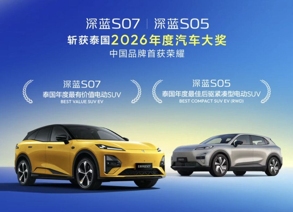 与此同时,深蓝汽车出海也捷报频传——深蓝S05与S07双双斩获泰国2026年度汽车大奖,成为首个获此殊荣的中国品牌;深蓝S05完成英国上市。至此,深蓝S05累计布局全球70个国家和地区,覆盖全球主要新能源汽车消费市场;深蓝汽车于丹麦正式发布,全球化版图再下一城。
