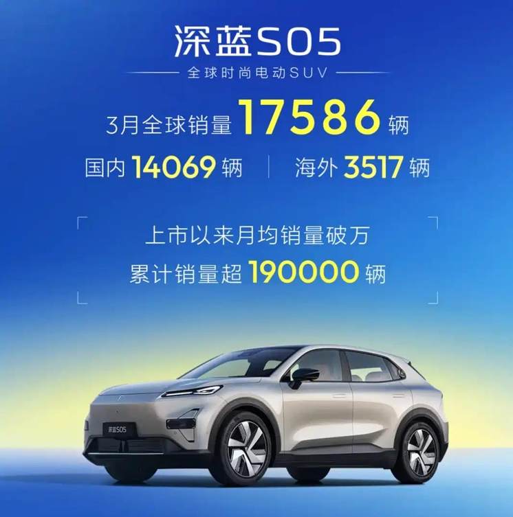 从具体车型销量来看,深蓝S05成为主要功臣,单月贡献17586辆,占总销量超五成。国内市场稳健走量(14069辆),海外出口(3517辆)持续发力,上市即保持月均破万,累计销量已超19万辆。15万级家用市场的 “常青树” 地位无可撼动。