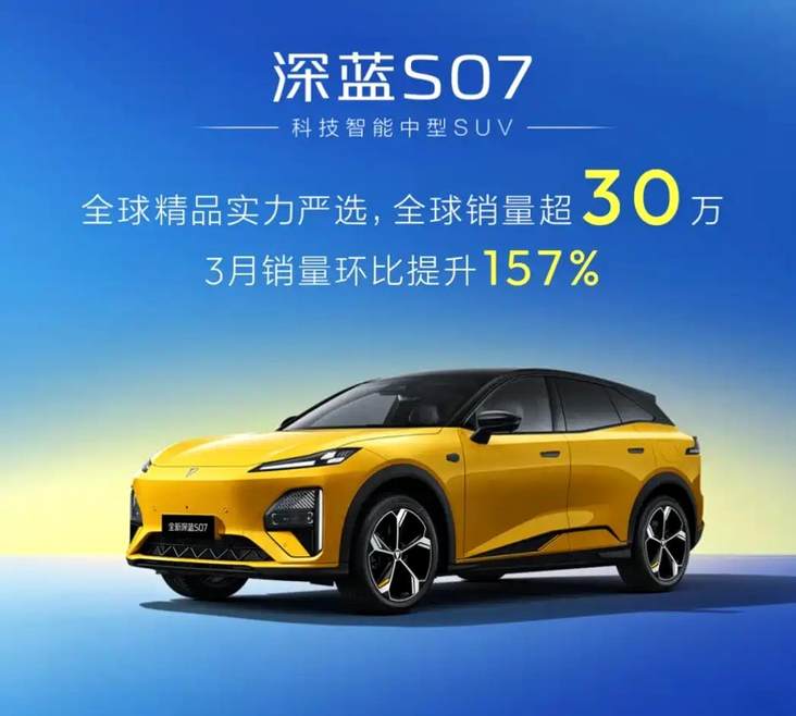 深蓝S07在3月销量环比提升157%。作为品牌首款战略车型,其全球累计销量已突破30万辆,成为深蓝品牌向上、冲击20万级市场的中坚力量。4月,深蓝S07将推出焕新产品,有望迎来进一步提升销量。