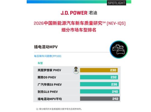 此次J.D. Power研究数据显示,2026年中国新能源汽车整体平均PP100为231,较2025年增加5个PP100,质量问题整体呈上升趋势,但增长速度放缓,其中设计相关问题占比高达70%,成为主要质量关注点,而岚图梦想家在这样的行业背景下脱颖而出,凸显其产品质量优势。