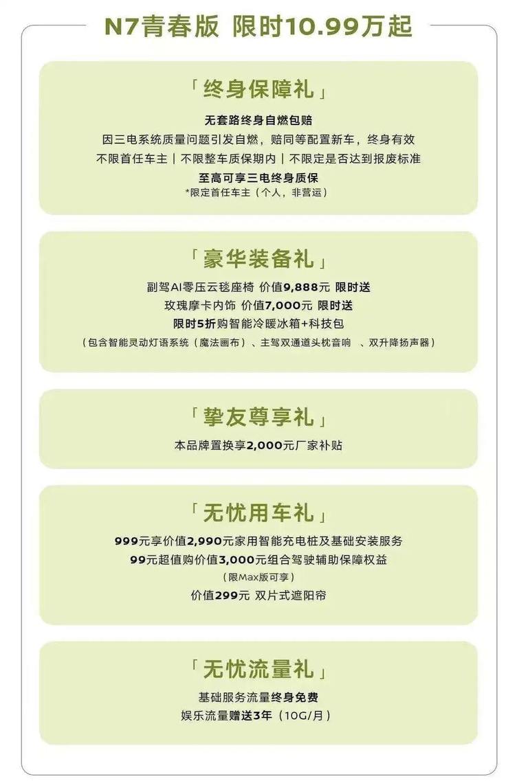N7青春版用10.99万元的价格,打破了“低价=低配”的行业潜规则;用不减配的核心体验,证明了合资品牌在新能源赛道上的产品力底气;用双终身保障,回应了家庭用户对长期安心的深层诉求。