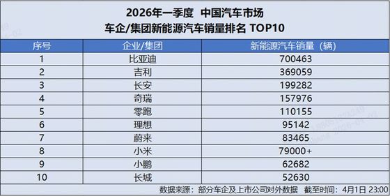 4 月 1 日,比亚迪发布 2026 年 3 月产销数据,单月总销量达300222 辆,强势突破 30 万辆大关,再添荣耀战绩,斩获中国车企销量冠军,并连续 58 个月蝉联中国新能源汽车销量冠军,持续稳固行业龙头地位。截至目前,比亚迪新能源汽车累计销量已超1580 万辆,一季度累计销售 700463 辆,以硬核数据印证技术与规模双重实力。