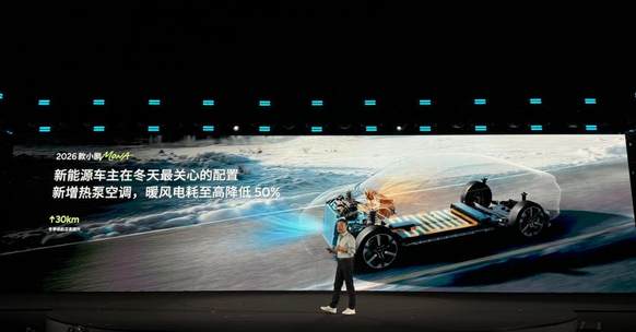 在核心的动力续航方面,2026款小鹏MONA M03搭载小鹏自研的混合碳化硅扁线电驱系统,电驱峰值效率达到95%,续航可提升20–30km,CLTC综合续航里程最高可达640km。此外,新车升级热泵空调,冬天开暖风电耗降低50%,冬季续航至高提升30km,并且百公里综合电耗低至10.8kWh。