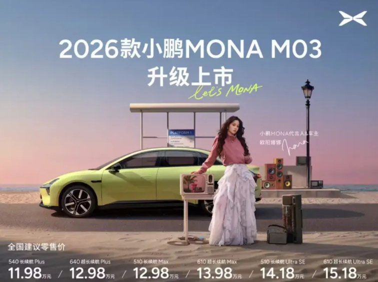 内外微调,智驾/续航升级,2026款小鹏MONA M03上市