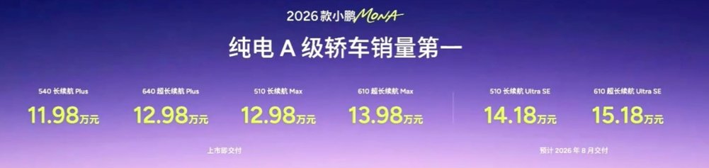 售价11.98-15.18万元,2026款小鹏MONA M03正式上市