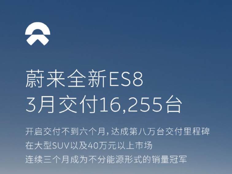 蔚来公司3月份交付新车35486辆,同比增长136.0%。其中,蔚来品牌交付新车22490辆,同比增长120.1%,现在,全新ES8是蔚来汽车的销售“主力”,上市之后销量表现一直很强劲。而蔚来之后能否保持住当前热销的状态,还将拭目以待。