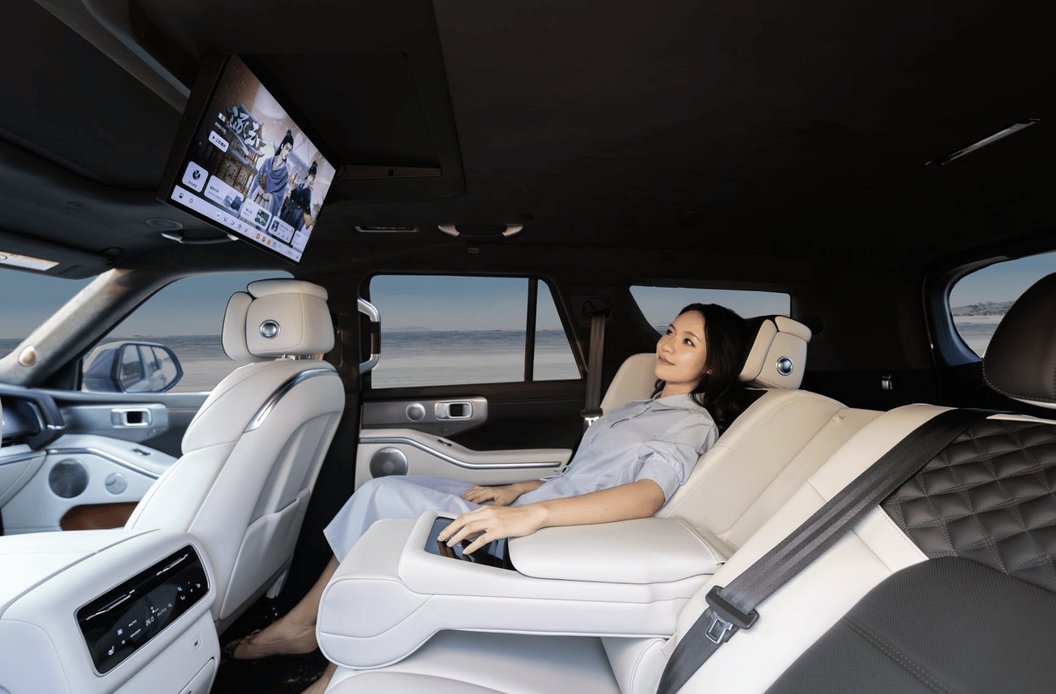 舒适性配置的诚意,更是直接拉满。全车四座均配备通风、加热与10点位3层气袋按摩功能,前排座椅支持20向电动调节,可实现180°放平,后排座椅靠背角度可调至141°,哪怕是长途乘坐也能保持舒适姿态。车内搭载5.4L智能冷暖箱,支持-6℃至50℃四挡温控,出行途中的饮品、食材保鲜需求都能轻松满足;全系标配的后排隐私玻璃、电动遮阳帘,以及21个扬声器打造的7.1.4杜比全景声系统,让每一位乘员都能享受到不分主次的豪华体验,真正做到了“全员尊贵”。