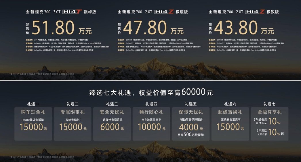 全新坦克700预售43.8万起,硬件实力进一步增强,城市通勤更省钱
