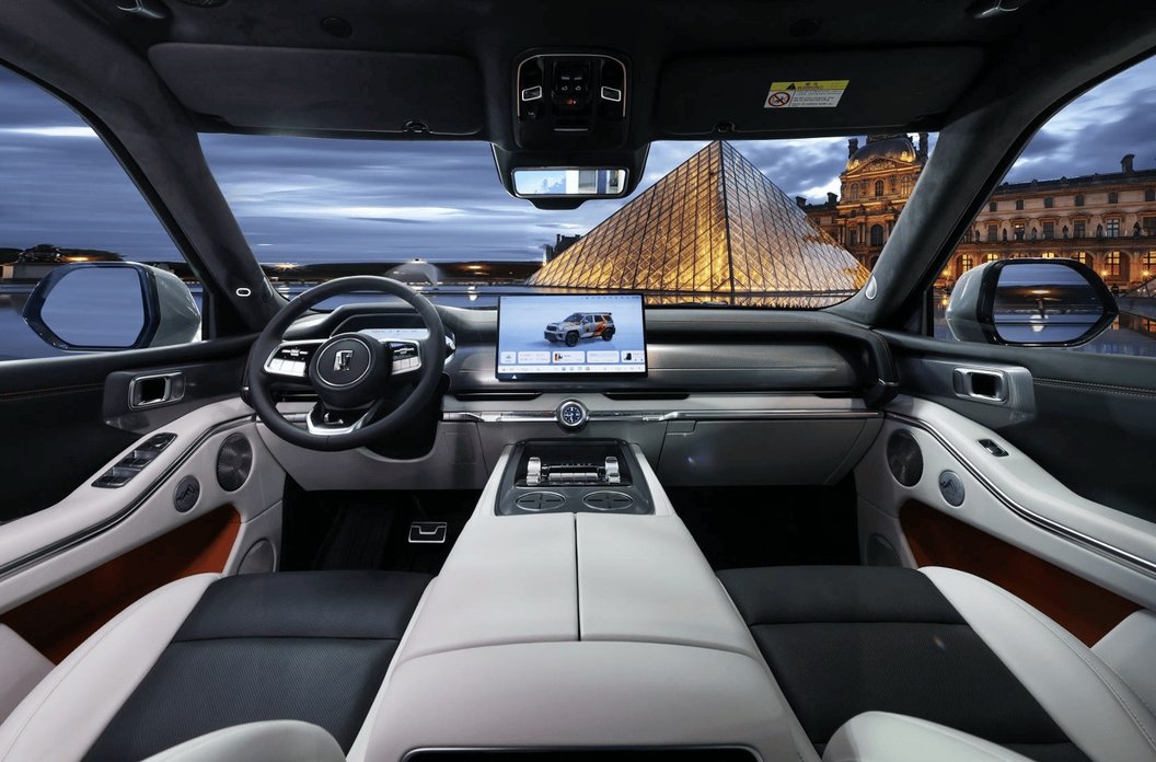 在设计上,全新坦克700最动人的地方,是跳出了西方豪华的审美框架,将中国传统文化的底蕴融入每一处细节,没有刻意堆砌的浮夸,只有藏在肌理里的气场。新车以中国五大瑞兽之首的麒麟为设计灵感,前高后低的车身姿态复刻了麒麟昂首蹲坐的磅礴气势,静态停驻时,仅凭线条就自带百万级旗舰的压迫感。标志性的“瑞麟之眼”机械旋转激光大灯,可自动开合,点亮瞬间仿佛瑞兽苏醒,既有机械的精致感,又有中式美学的仪式感,彻底摆脱了硬派越野“粗粝”的刻板印象。
