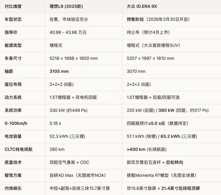 当然,这是大众作为后来者(也是细分市场新挑战者)必须拿出的诚意,也是大众晚发力增程新能源赛道不得不付出的“代价”。但从技术创新和产品成熟度看,大众9X同样具有一次解决前期增程旗舰SUV所有用户痛点的“后发优势”。