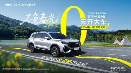 美景不等人,与其在选车上反复妥协与纠结,不如一步到位,选择一台全家人都满意的大空间SUV。无论是二孩家庭的日常通勤,还是三代同堂的周末出游,一辆豪越L,就能轻松装下生活的所有可能。8.99万元的超低门槛加上5年0首付或7年超低息的低成本金融方案,正是入手豪越L的最佳时机,不妨趁着春日正好到店试驾,为家人开启更宽适、更智能的移动生活新篇章。