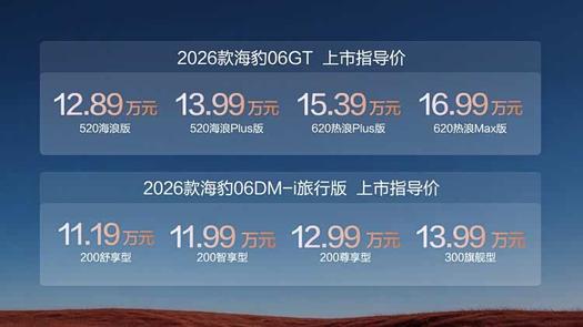 2026款海豹06GT与2026款海豹06DM-i旅行版此次焕新而来,不仅切实回应了用户真实需求,更直观彰显了比亚迪在新能源领域的技术领先性。目前两款新车已陆续到店,欢迎感兴趣的朋友走进比亚迪海洋网各大门店,亲自感受双豹齐发带来的个性出行新体验。