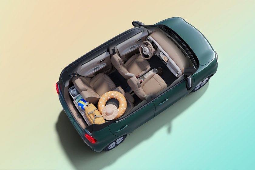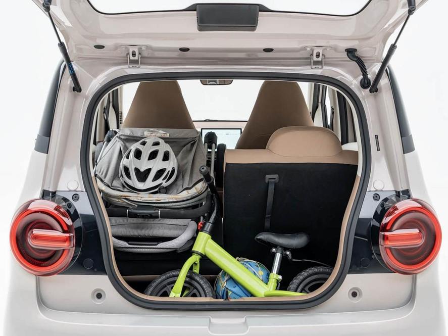 这次换代,五菱直接把微型代步车的标准拉高了一大截,升级点全戳在用户痛点上。以前两门版后排上下车得“钻”,带娃、载朋友巨尴尬,现在五代宏光MINIEV直接上同级唯一四门四座,车身3268×1520×1575mm,前后排间距793mm,后排头部空间达到620mm,彻底解决传统微型车后排压抑的痛点,真正实现四座平等。另外,车内提供了20个储物空间,放倒后排能拓展到838L,买菜接娃、短途出游全能打。