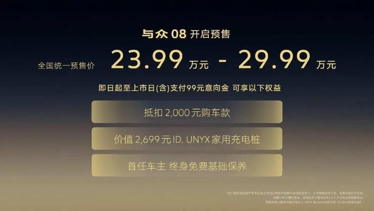 从沃尔夫斯堡到中国市场,大众百年造车信仰从未动摇。3月26日,金标大众首款全尺寸纯电SUV与众08在合肥开启预售,预售价格为23.99万元-29.99万元。与众08的到来,不仅是一款新车的预售,更是大众在电动时代的一次郑重宣告:无论技术如何迭代,用户如何变迁,大众还是那个以用户生命与长期价值为第一准则的大众。