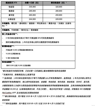 此次活动中,凯迪拉克XT5带来多重春日焕新权益:全新车色「东漓灰」正式亮相,限时选配价5000元,超跑质感触手可及;重磅升级第二代“金身计划”,在已有车损超三成免费换新的基础上限时加赠“金质权益”,三年内全车核心部件大额质损同样享受免费换新车,品质安全双重兜底。与此同时,凯迪拉克XT5推出多项春日限时福利,包括不限品牌10,000元同级最高增换购补贴、12期0息金融方案、5年内10,000元再置换补贴,叠加限时5,000元抵10,000元定金膨胀,春日限时权益价22.99万元起。