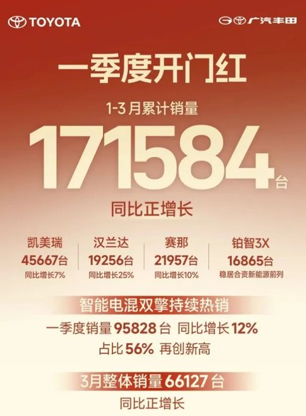 合资黑马!广汽丰田3月和季度销量实现双增长,还有谁不服?