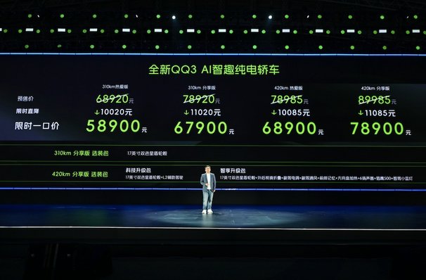 从经典国民小车到全球精品纯电车型,全新QQ3以越级产品力打破7万级市场天花板,将豪车级配置下放,实现“入门即高配、中配即越级”。上市即交付,超7000台新车已到店,全面满足用户即时用车需求。未来,全新QQ3将继续以“快乐平权、智造平权”为理念,以高品价比与硬核实力,成为年轻人首台车、家庭第二台车的优选,续写中国小车传奇,向世界传递中国汽车文化的魅力。