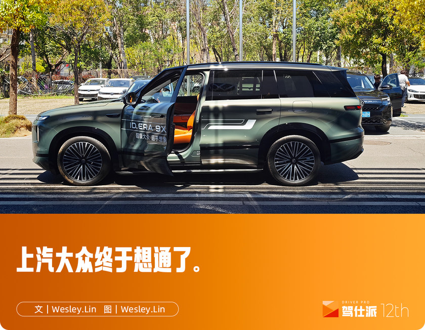起初,我对ID.ERA 9X没什么深刻印象——大家都说,这又是一款“换壳车”。但相比起金标大众的与众08,它沉稳的造型其实更讨我欢心。这两款车,都反映着大众在国内的全新发展路线,和原来的ID.系列不同,它们更博采众长,充分发挥了合作方的优势,可以说是强强联手的产物。那么,今天要体验的ID.ERA 9X到底能取得什么样的效果呢?