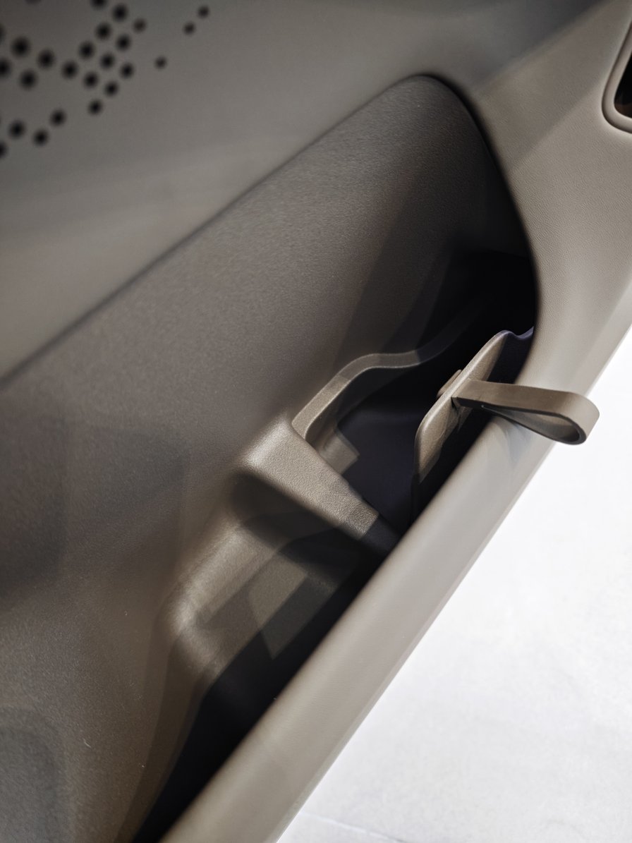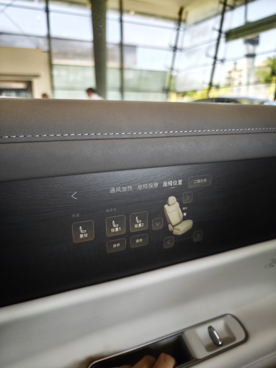 细节上,创新使用的隐藏在木纹饰板下的显示屏,实际显示效果比我预期的更好,总体来说反应很快,也很跟手很清晰。但后排门板屏自动设定的亮度会有点偏暗,需要手动调亮,菜单也比较密集比较小。
