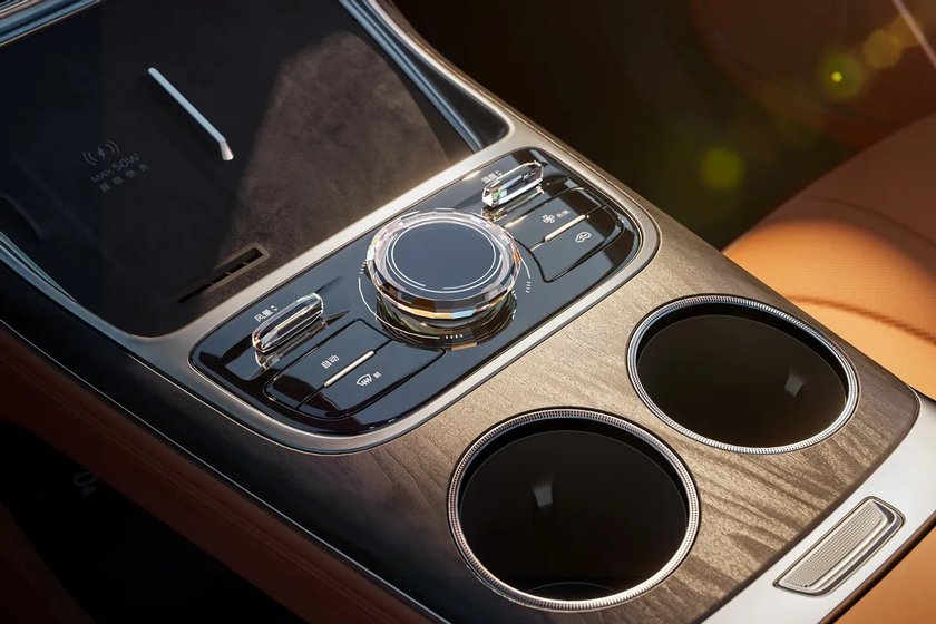 内饰细节上,加入了木纹饰板、水晶与镀铬元素的搭配,不会显得廉价,也不会过于浮夸,刚好契合家用车的豪华感需求,同时提供三种内饰配色可选,给了用户更多个性化选择。车机方面搭载Flyme Auto系统,无线充电面板与空调出风口规整布局在中控屏下方,功能分区清晰,这套车机系统在银河旗下多款车型上已有成熟应用,流畅度与功能性都经过市场验证,后续实际使用体验值得期待。
