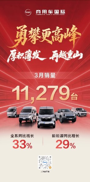 【上汽商用车3月销量全线突破】