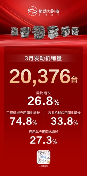 皮卡、轻卡、重卡、轻客多线出新,增长格局持续巩固。大通“新途”“大拿”轻客系列3月热销12,108辆,同比增长53%,持续巩固“中国轻客第一品牌”的龙头地位;其中“大拿”系列热销4,607辆创新高,同比实现超300%增长。上汽大通跃进轻卡热销5,041辆,批售同比增长45%,福星S90、大拿T2换电版等三款新车上市,大客户订单同步落地。皮卡板块持续走强,3月销量达6,499辆、同比增长48%,其中国内销量单月突破1,500辆,创单月新高。全新星际L、26款星际EV、26款T60正式上市,并首次推出7天免费试用的“先试后买”模式,把“后悔权”交还给用户。3月,依维柯得意8AT在十大重点区域上市,欧霸·山海系列登陆苏州GT Show,城市商用车与越野改装两大赛道同步发力,以多元产品满足不同用户出行需求。红岩新能源车型销量同比增长900%,第三代新能源重卡发布即热销,现场斩获2,700辆订单,焕新出发势头强劲,开启中国重卡新能源转型新篇章。零部件板块新动力科技稳健增长,3月发动机销量达20,376台、同比增长26.8%,第一季度自营出口同比增长84.4%,全球市场竞争力持续增强。