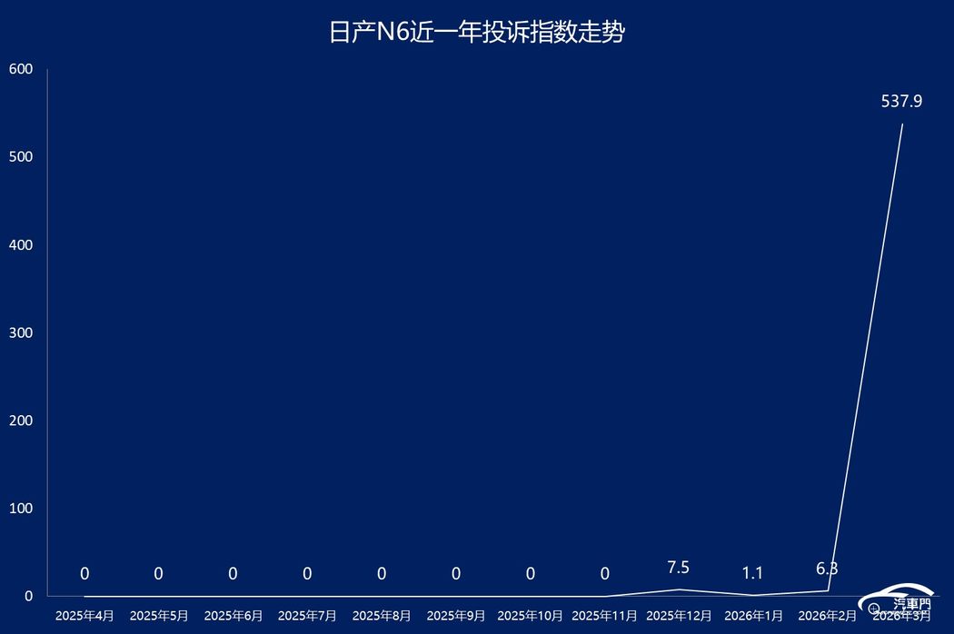 汽车质量投诉点评:日产N6作为上市不久的新车型,甚至一度被奉为日产的救命稻草。然而好景不长,高达8348.1%的激增,足以看出不少车主实在是苦不堪言。有车主在2025年12月提的车,2026年1月就收到了厂家的召回通知。除车辆的手机钥匙偶尔无法感应外,驱动电机油泵的密封不严,极端情况甚至可能导致车辆动力消失。更是令车主心惊胆战。此外车机屏幕无故黑屏等问题也是屡次出现。诸如此类的问题还未得到妥善解决,区别对待也来了。据反馈部分车主已收到10000积分补偿,而多数车主却全程未获任何补偿说法,如此差异让用户几乎实锤品牌“双标”。