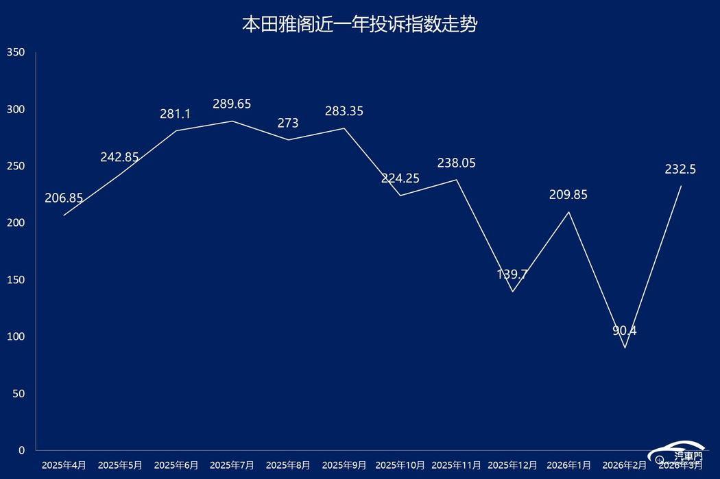 汽车质量投诉点评:雅阁今年的投诉指数,跟坐过山车一样忽上忽下的。而被投诉的重点却一直没变,除发动机故障外,之前经常被提起的吃胎偏磨,如今再次成了其上榜的幕后黑手。雅阁的悬架吃胎偏磨主要是由于,后轮外倾角负值过大、前束角失准,导致轮胎接地不均,引发内侧异常磨损。而发动机问题主要出现在十代雅阁燃油版等车型上,除加速无力、仪表盘发动机故障灯闪烁外,还有喷油嘴堵塞的问题。据4S店工作人员透露,发动机问题多数源自燃油质量,建议消费者尽量选择中石油中石化的高标号燃油。
