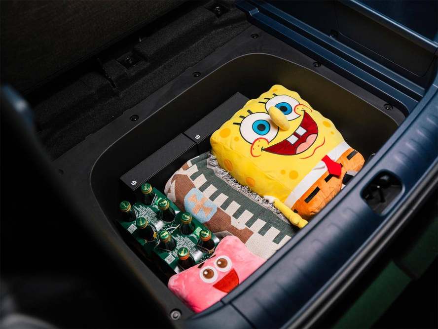 除了乘坐空间之外,零跑A10的储物设计得也很巧妙。比如行业首创的106L可冲洗下沉式储物舱,周末去露营,沾了泥的鞋子和帐篷,不用怕弄脏后备厢地毯,直接丢进这个下沉舱里;甚至买了海鲜、榴莲这种容易串味的东西,也能和车厢隔离开。最贴心的是它自带排水孔,回家拿高压水枪一冲就干净了,完全不用费心打理。