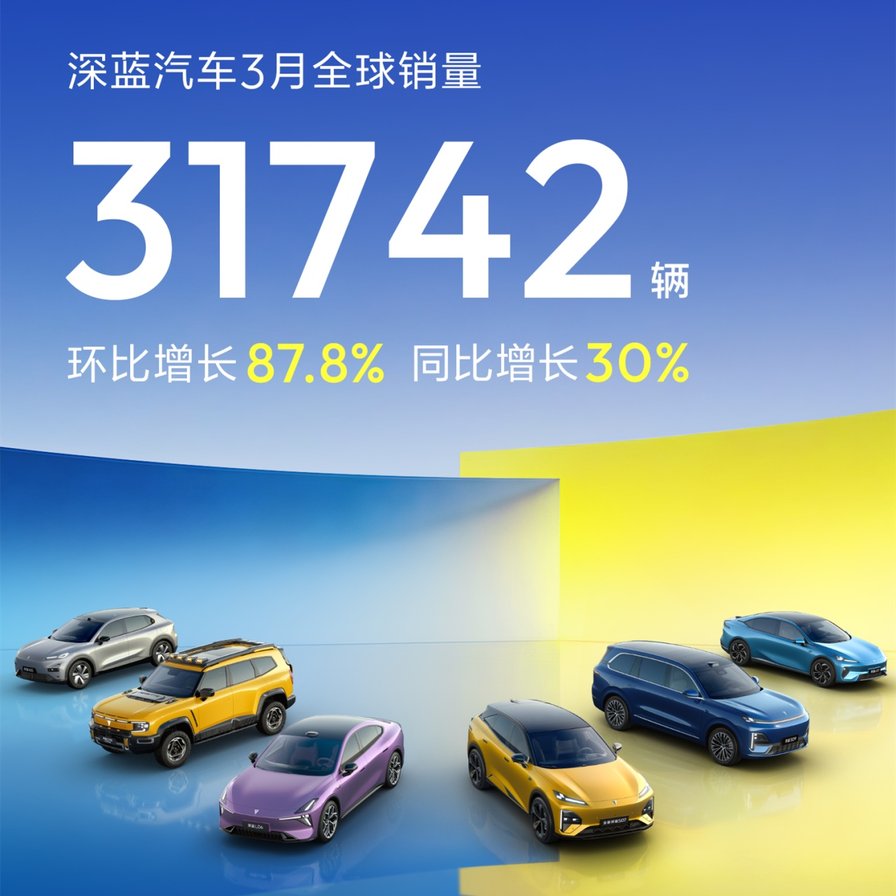 3月国内新能源市场迎来明显复苏,各家车企陆续交出月度成绩单。根据深蓝汽车公布的3月全球销量数据来看,31742辆的成绩单,同比增长30%,环比增长87.8%,实现同环比双正向增长。