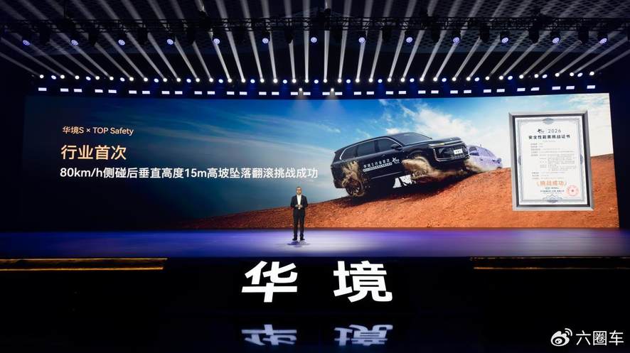 以极致安全为核心基因,华境S参考最新C-NCAP 五星安全标准设计,打造行业领先的全链路防护体系。主动安全层面全系标配华为乾崑全维防碰撞系统CAS 4.0。车身安全层面,华境S携手全球汽车板龙头宝钢,采用核潜艇级2000MPa超高强钢+一体化热成形技术,包括全球首发的一体式热成形前地板骨架和行业领先的一体式热成形双门环,打造五纵十一横底部结构+笼式六环车身框架+四门八处2000MPa防撞梁。此外,华境S携手奥托立夫和延锋,配备同级顶配双腔体远端气囊,以9气囊14腔体实现舱内全维守护,为乘员舱构建坚不可摧的安全屏障。新车更成功通过行业首次“80km/h侧碰后15m高坡坠落翻滚”极限挑战,斩获中汽品科TOP Safety安全性能挑战证书。