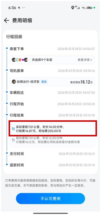 广东的消费者王先生(化名)则在如祺出行用车后被要求支付高达200元的附加费。车友公社从王先生提供的订单截图可以看到,其乘坐如祺出行经济型车辆,实际里程7.01公里,时长14分钟,行程费16.87元,附加费却高达200元。