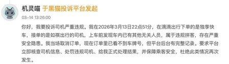 在黑猫投诉平台可以发现,截至 2026年4月8日12 时,黑猫投诉平台中包含 “如祺出行” 的投诉案件累计达 3310条,司乘两端均有大量维权诉求。其中乘客端投诉集中在无缘无故扣钱、未乘车扣款、司机辱骂乘客、违规拼客等情况,司机端则聚焦于服务后被恶意克扣费用等问题。