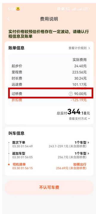 (支付时司机又加入了90元过桥费)