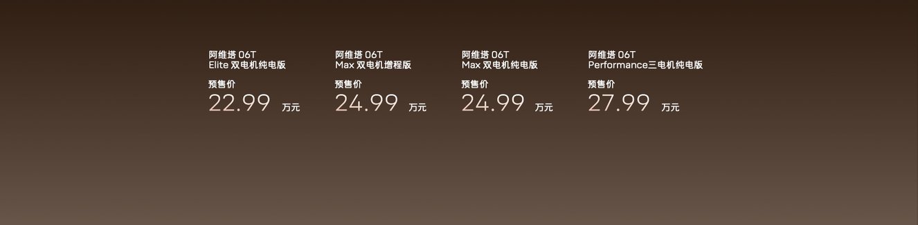 这样的背景下,华为乾崑与阿维塔战略合作2.0的全新车型——阿维塔06T,新车提供4款配置,预售价仅22.99万起,且全系标配分布式电驱、全系标配宁德时代电池、全系标配英国之宝音响、全系标配9气囊、华为全家桶等。