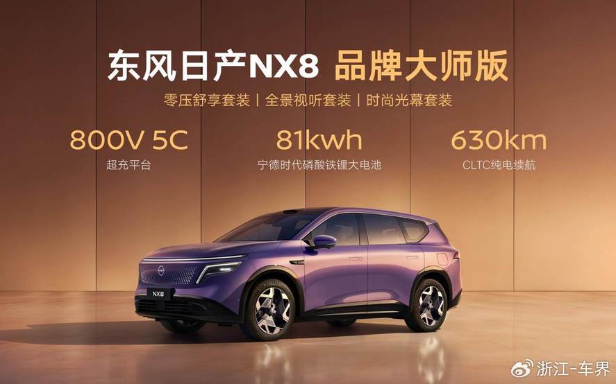 从研发到制造,东风日产23年来始终秉持精益求精的匠心精神。为了致敬同样追求卓越、在平凡领域中创造非凡的“大师级”用户,发布会上,东风日产NX8品牌大师版重磅登场。其搭载800V 5C超充技术、宁德时代81度大电池,纯电续航630公里。在外观、配置、驾控方面实现升级的同时,标配三个套装,并且享受与六大版本同等上市权益,上市限时权益价为19.99万元。