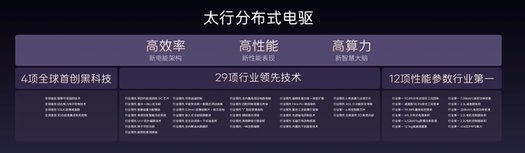太行分布式电驱集4项全球首创黑科技,12项行业第一参数,29项行业领先的技术于一身,拥有高效率、高性能、高算力三大核心优势。电驱系统工况效率超92.8%,全球第一,功率大幅提升的同时续航几乎零折损;体积功率密度行业第一,以更小体积释放更强马力,新阿维塔12三电机四驱版0-100km/h加速仅2.71秒,媲美500万级超跑;算力方面搭载全球最高六核电机控制器芯片,每秒处理40亿条指令,带来闪电般的扭矩响应和精细入微的控制,通过对左右两个电机进行超精密的独立控制,提供超过传统机械四驱100倍的扭矩响应速度。此外,新阿维塔12还搭载了法拉利同款电磁避震,支持全段阻尼无级调整,每秒千次的调整能力,紧急场景下快速抑制车身侧倾与俯仰,完美平衡日常舒适性与运动操控性。