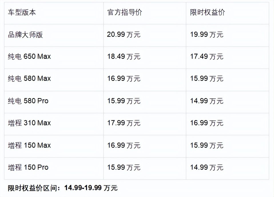 纯电版:提供 580km 及 650km 两种CLTC续航选择,满足城市通勤与城际出行,续航表现领先同级。