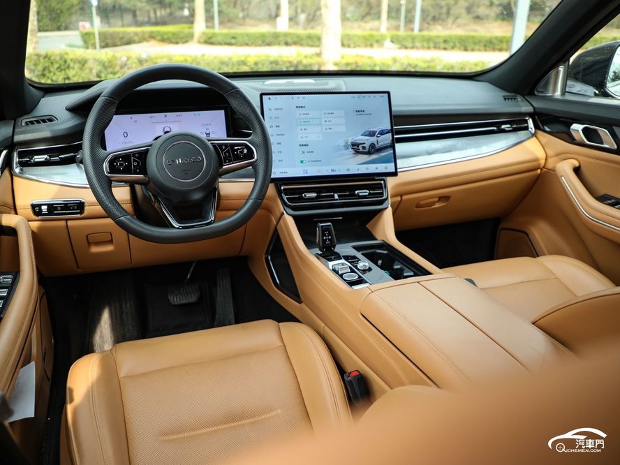 领克09 EM-P的内饰简约中带着精致感和豪华感。车内采用了大面积的真皮包裹,用料考究,做工细腻。扁平的仪表台覆盖了大面积的镀铬饰板,各个按钮、出风口格栅、方向盘、副仪表台等处也都加入了镀铬装饰。仪表台上,12.3英寸全液晶仪表盘和15.4英寸中控屏透着当代应有的科技感。