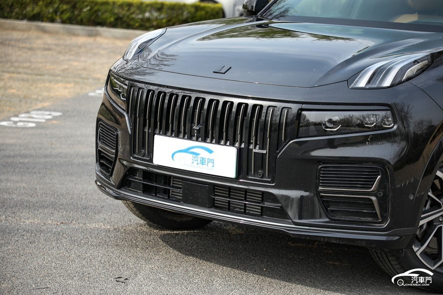 领克09 EM-P的前脸采用了传统设计,大尺寸直瀑格栅、侧进气口和下进气口都为开放式,大面积的熏黑配色进一步增加了机械感和性能感。