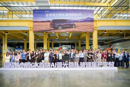 4月10日,小鹏集团与福耀集团在福州福耀玻璃园区联合举办“全球调光隐私玻璃新标杆——小鹏GX首块AI调光隐私玻璃量产交付”活动,双方共同打造的业内最强AI调光隐私玻璃正式发布,并完成首块量产交付。小鹏汽车汽车技术中心副总裁余鹏、福耀集团副总裁蒋炳铭出席交付仪式。