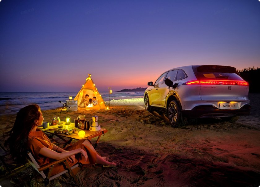 别克至境E7支持6kW外放电功能,成为家庭露营的“移动能量站”