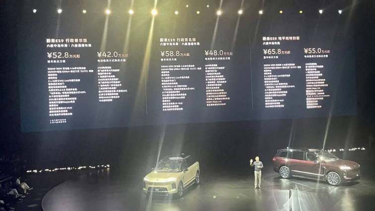 当晚,蔚来ES9共推出三个版本,其整车购买预售价为52.8-65.8万元,电池租用购买预售价则为42-55万元。既然是“产品技术发布”,这次就先重点聊一下该车的产品本身与核心技术。至于其它,则留待ES9正式上市之时。