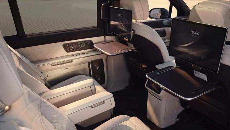 考虑到这一点,坐在该车第二排之用户的确未必需要一块更适合播放电视剧或动画片的吸顶屏。相比之下,直接面对他们的椅背屏或许更适合视频通话、电话会议等商务场景。